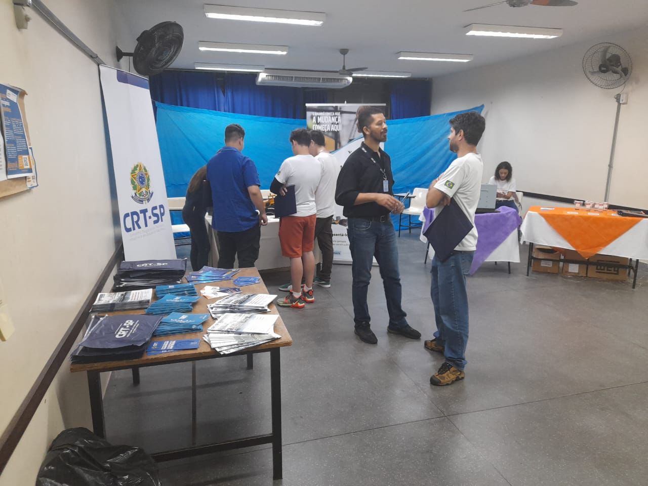 A convite da comissão organizadora, o CRT-SP esteve representando pelo chefe de escritório de Bauru, Sidiney Santos Carvalho; e pelo representante regional, Rodney Constante da Silva. Mesmo impossibilitado de estar presente em virtude da participação no evento “Inovação e Valoração Profissional Técnica” e na 54ª Sessão Plenária Ordinária, em São José dos Campos, o conselheiro Evanildo Cherobim Camaforte colaborou na apuração das informações e na logística de envio de materiais de divulgação do conselho para distribuição aos alunos, professores de cursos e visitantes, de maneira a divulgar as ações do conselho como autarquia pública federal em defesa da sociedade e pela valorização profissional dos técnicos. “O CRT-SP marcou presença apresentando as legislações técnicas que regulam a profissão, distribuiu material orientativo e atendeu diversos técnicos com dúvidas sobre registro e atribuições profissionais”, pontua Sidiney Santos Carvalho.