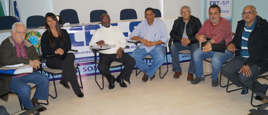 Participaram da reunião os conselheiros Agostinho Ferreira Gomes, Carlos José Alves de Almeida, Carlos Roberto Alves, João Batista dos Reis e José Tadeu de Aguiar Pio; o coordenador José Avelino Rosa, vice-presidente do CRT-SP; e a assessora Giovana Cunha.