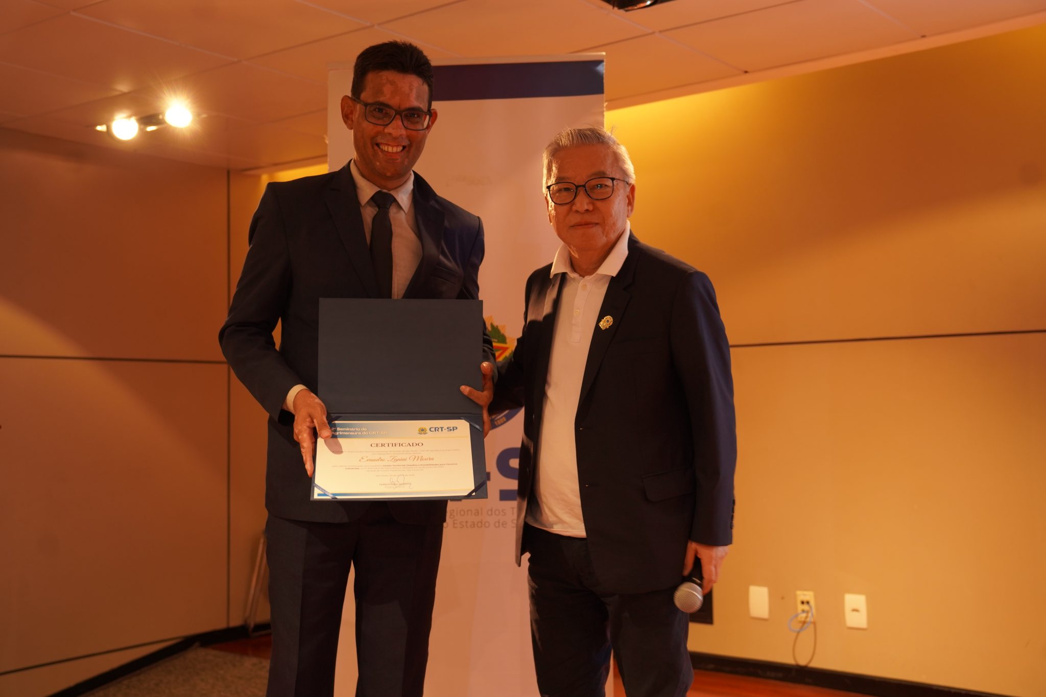 Evandro Zanini Moura: palestrante recebe certificado de participação do presidente, Gilberto Takao Sakamoto