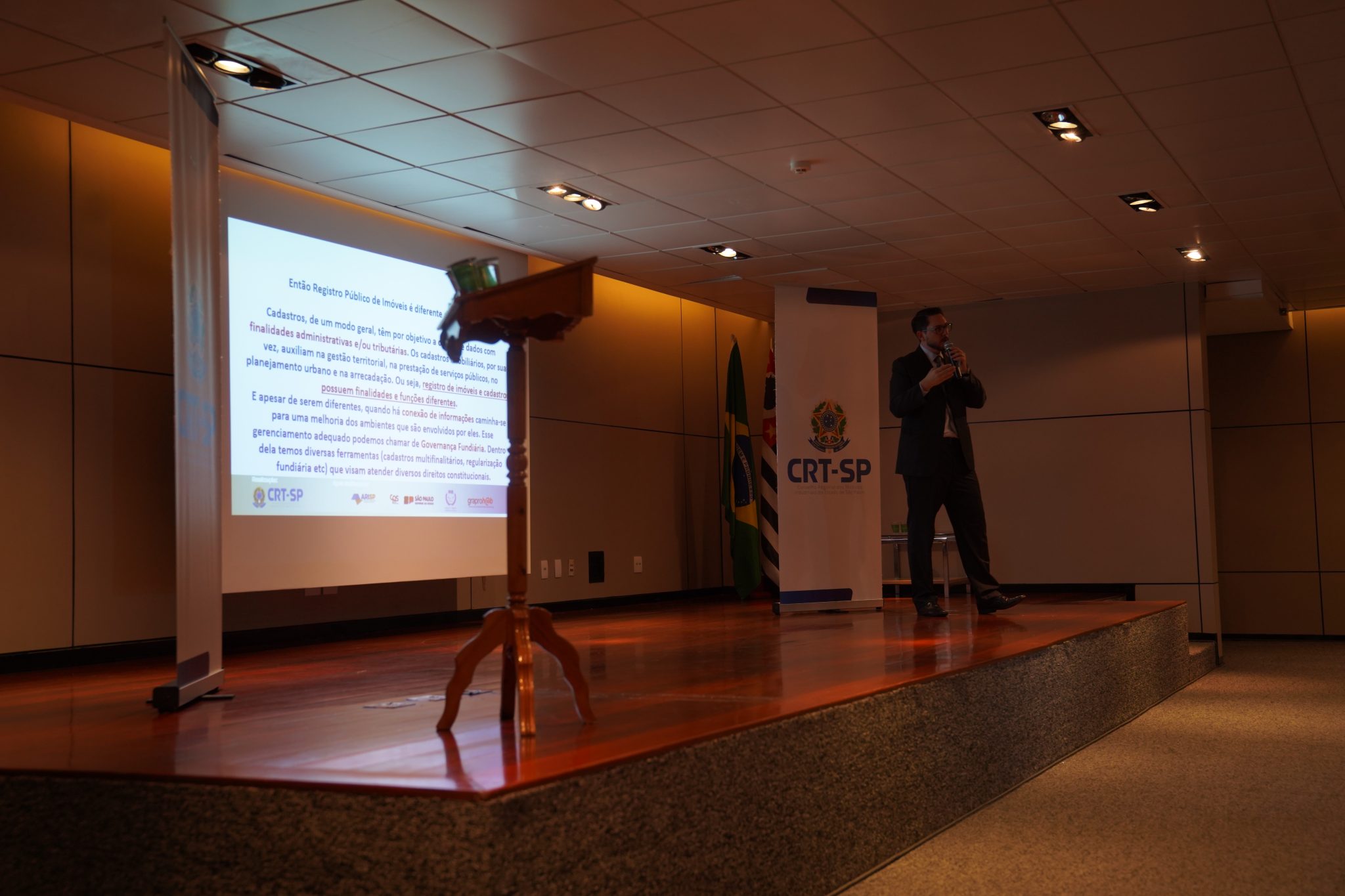 “É sempre um prazer falar de registro de imóveis para pessoas qualificadas, como são os técnicos do CRT-SP. É muito importante essa integração de informações para que possamos avançar no sistema registral imobiliário, além de criar novas expectativas e caminhos de georreferenciamento urbano ou rural, para que todos tenham um pouco mais de conhecimento da nossa atividade e, assim, consigamos promover um entendimento maior do que é o registro de imóveis.”