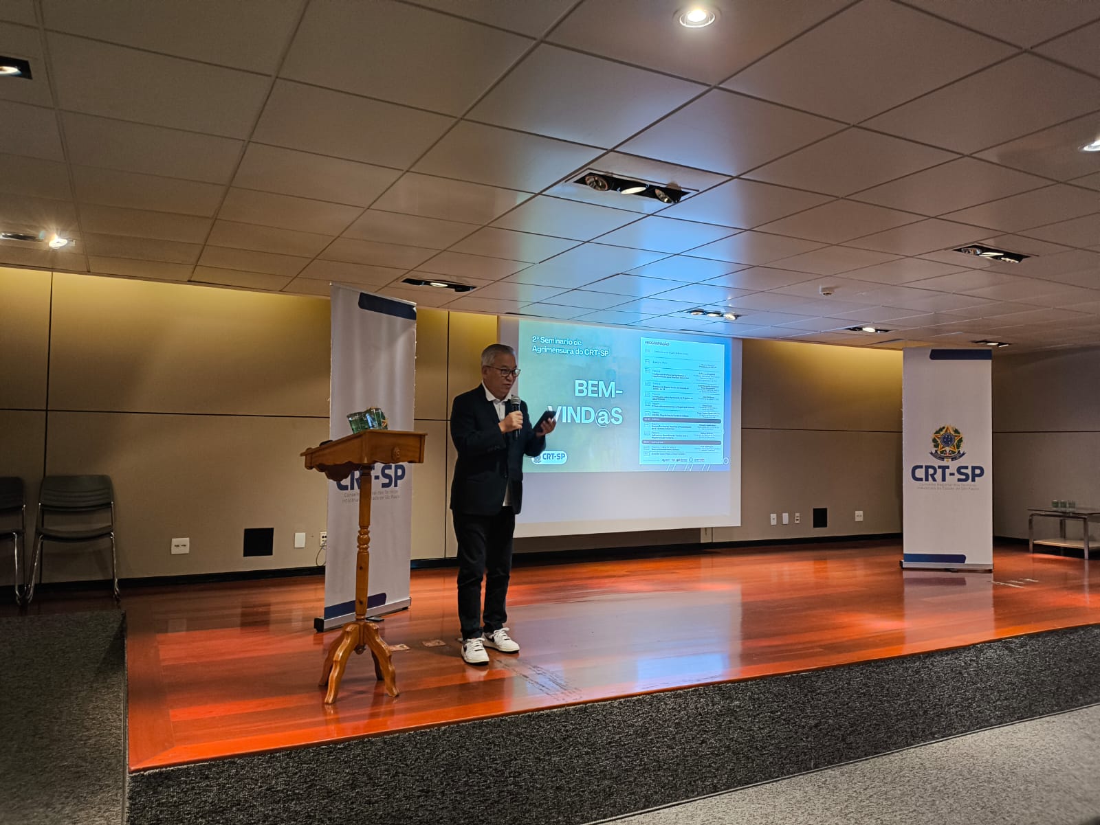 Mesa de debate e encerramento – Ao final do evento, compôs-se uma mesa de debate, com a oportunidade de troca de informações e esclarecimento de dúvidas entre os participantes do seminário. No discurso de encerramento, o presidente, Gilberto Takao Sakamoto comunicou sobre o INOVATEC, espaço de capacitação presencial e online recém-inaugurado pelo CRT-SP no PIT SJC, apresentando uma reportagem veiculada pela TV Vanguarda, afiliada do Grupo Globo no Vale do Paraíba.