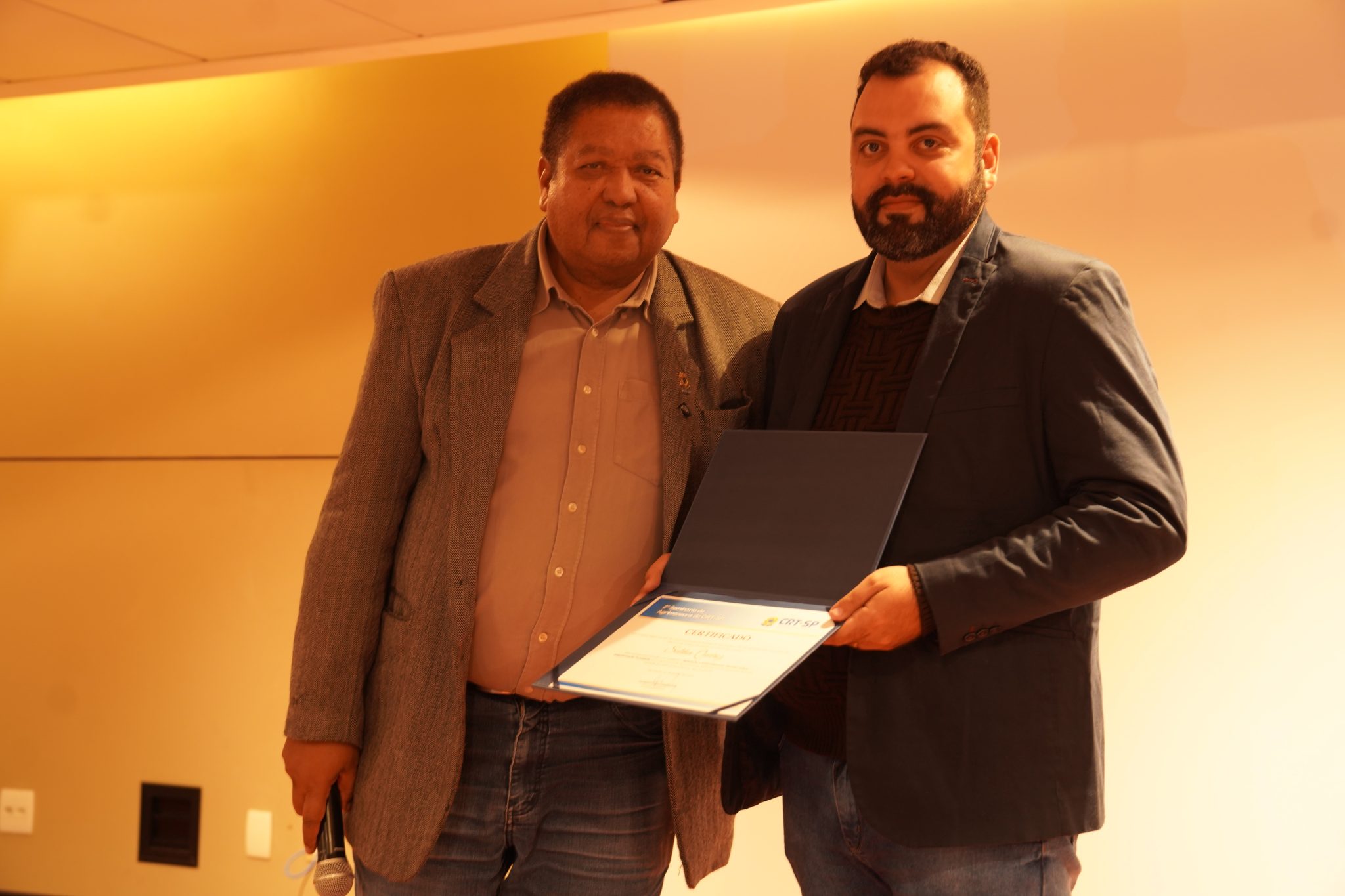 Guilherme Braghirolli: palestrante recebe certificado de participação do diretor financeiro, Pedro Carlos Valcante