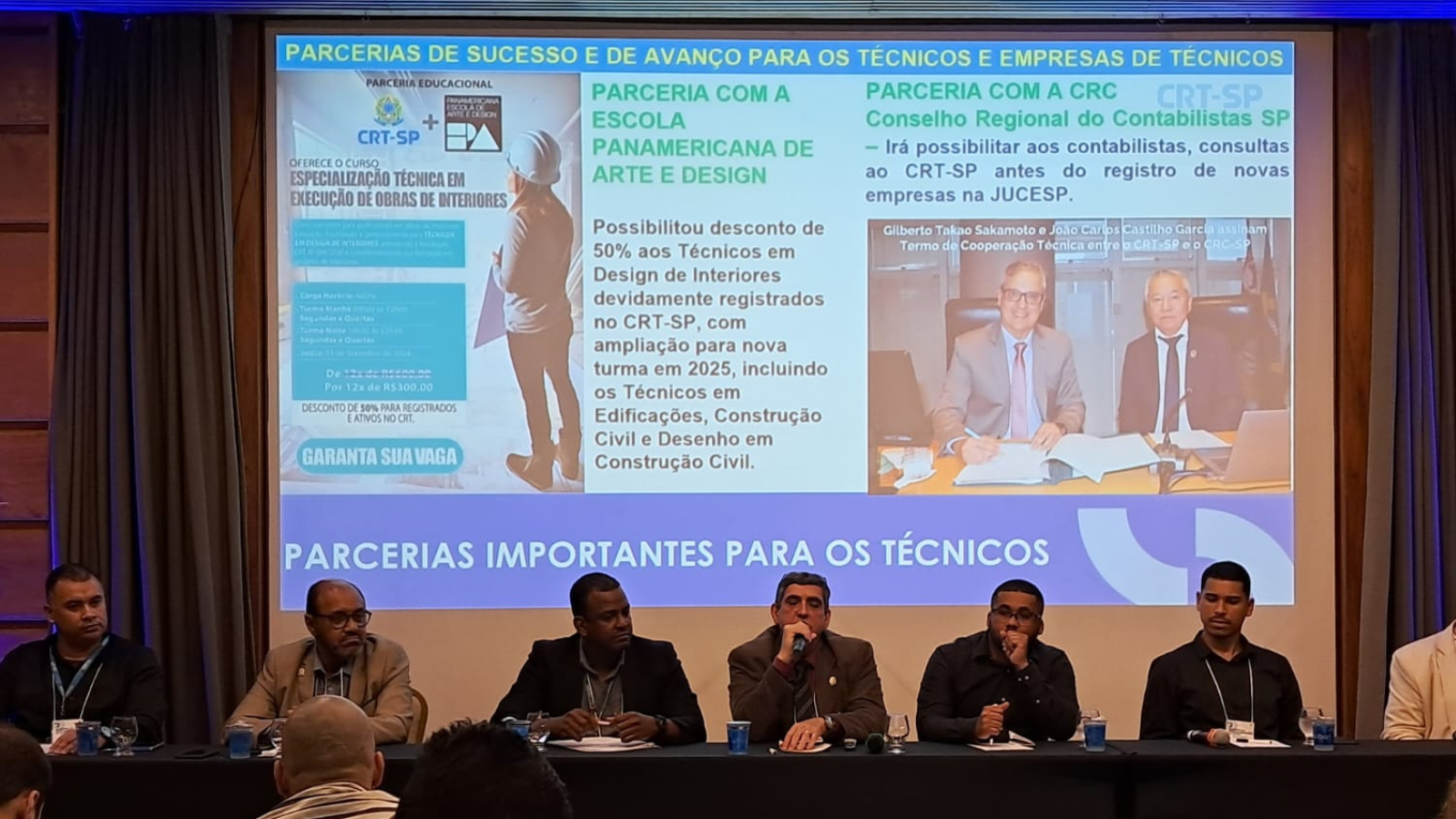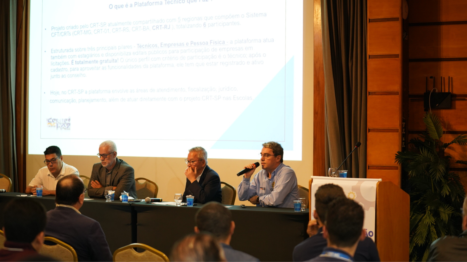 Técnico que Faz e mais contribuições do CRT-SP – A exemplo de outros conselhos regionais que já aderiram à plataforma online e gratuita Técnico que Faz, durante o evento foi assinado um termo de cooperação entre o presidente do CRT-SP, Gilberto Takao Sakamoto, e o presidente do CRT-RJ, Gilberto Palmares. Operacionalizada no CRT-SP pelo assessor da diretoria executiva, Plinio Cimino, a ferramenta tem gerado inúmeras oportunidades de serviços e recolocação profissional para os técnicos registrados, que podem inserir currículos ou divulgar suas atividades avulsas à sociedade em geral. Na ocasião, Gilberto Takao Sakamoto enalteceu o sucesso da plataforma e destacou outra ferramenta recentemente lançada: Aprenda com quem Faz, com o objetivo de conectar técnicos registrados em dúvidas sobre a profissão ou dificuldades de executar serviços, com profissionais de experiência comprovada dispostos a cooperar.