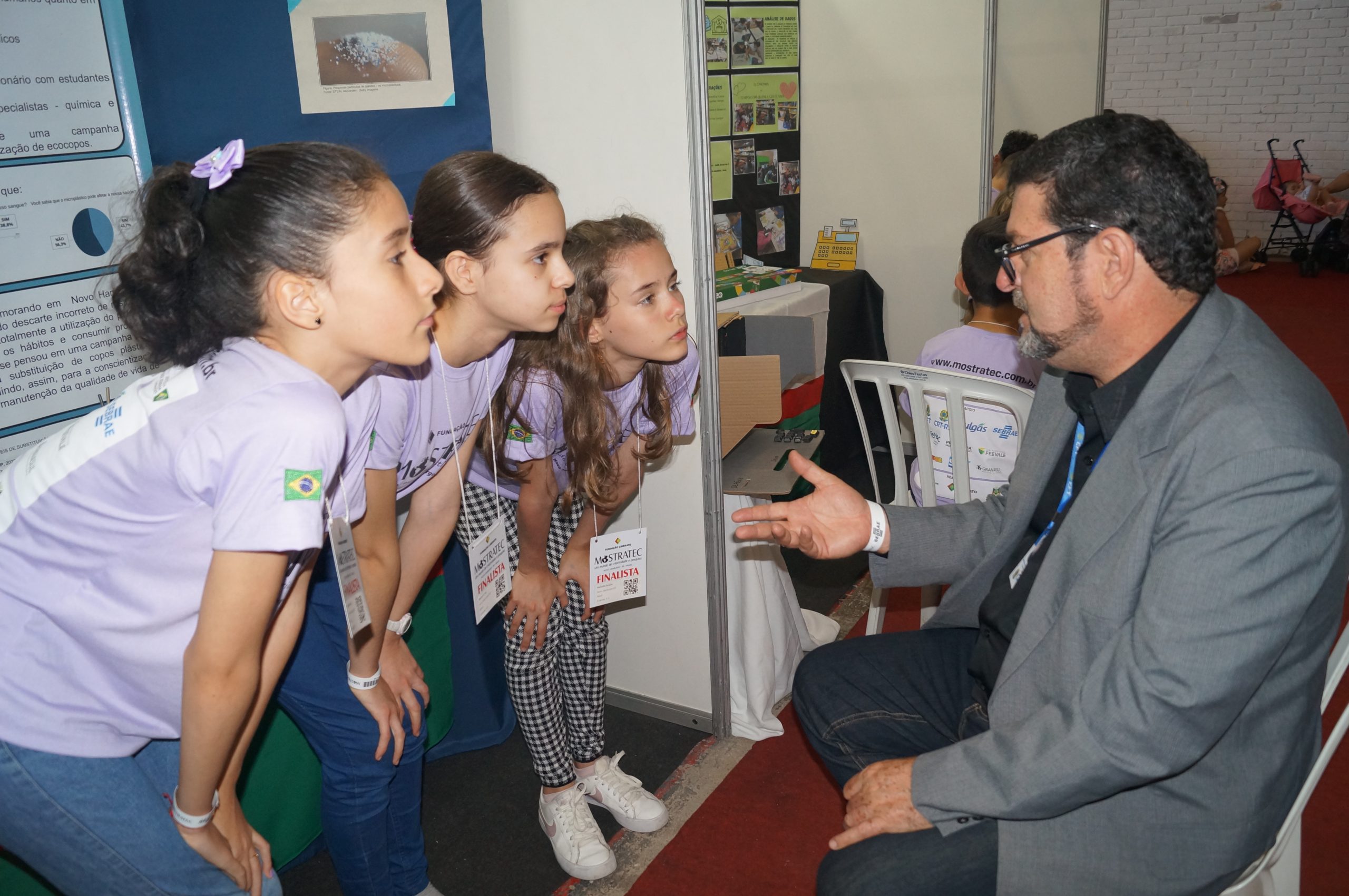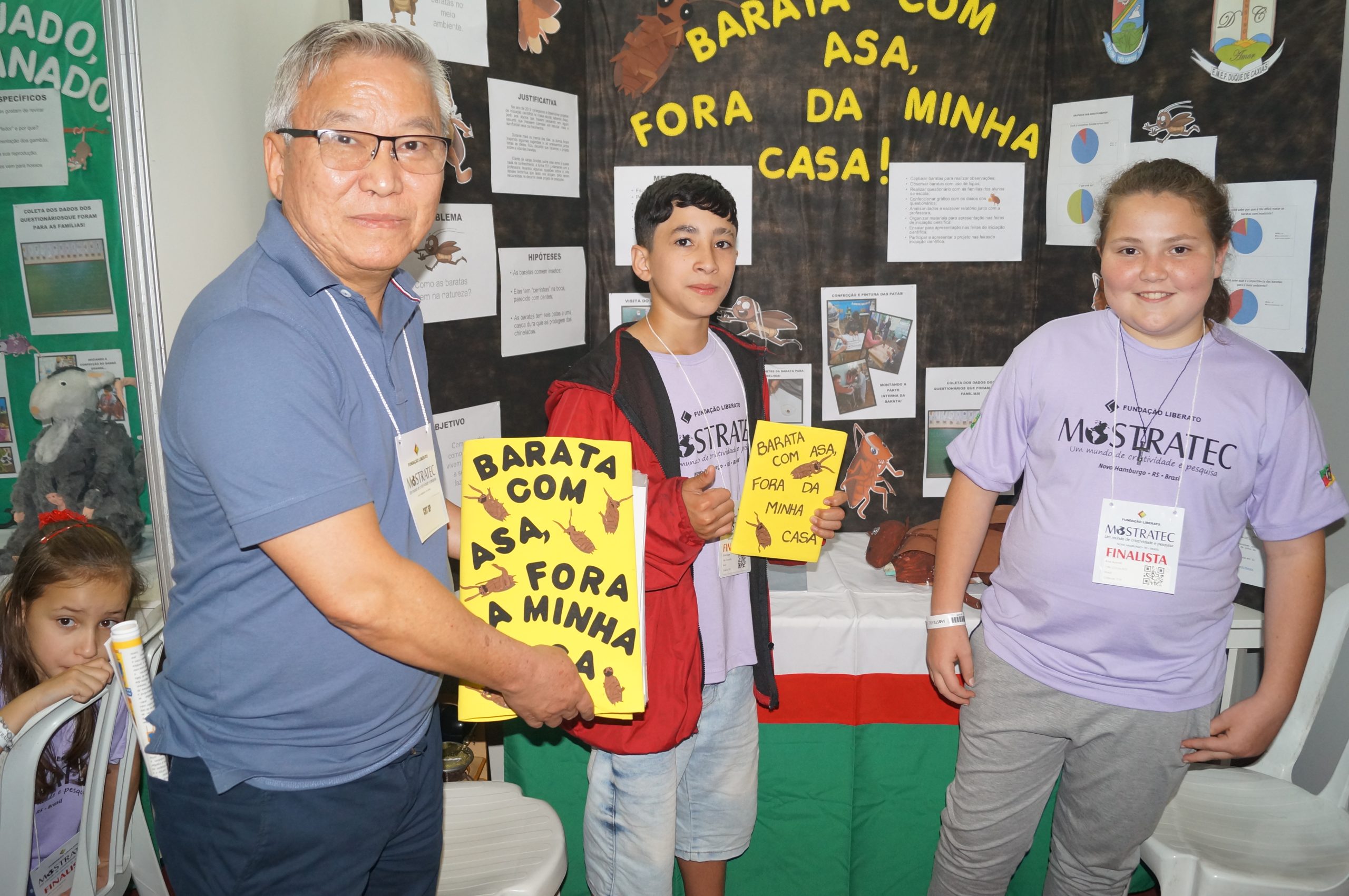 Juntamente com o diretor administrativo Welington Guilherme Rezende, o conselheiro regional Adevandro Benedito Olmeda e o conselheiro federal Narciso Donizete Fontana, no terceiro dia de exposição dos projetos, o presidente Gilberto Takao Sakamoto reservou seu tempo para conhecer projetos desenvolvidos por crianças e adolescentes. De acordo com a organização, dos quase 700 projetos expostos na feira, 337 compuseram a MOSTRATEC Júnior, sendo 264 do ensino fundamental e 73 da educação infantil. Alguns destaques: pandemia do abandono e maus-tratos, uma problemática exponencial de impacto na vida animal, ambiental e sociocultural; barata com asa, fora da minha casa; os efeitos dos microplásticos; entre outros.