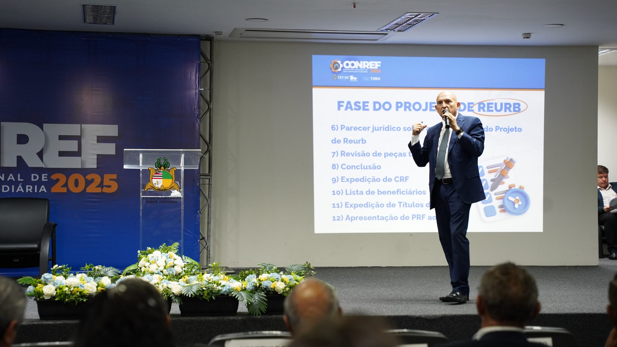 Segundo e último dia – O segundo do CONREF 2025 começou com a palestra “REURB: Expectativas e Realidades”, ministrada por Evandro Zanini Moura, que tem no currículo doutorando e mestrado em desenvolvimento regional pela Universidade Regional do Noroeste do Estado do Rio Grande do Sul (UNIJUI-RS); ele também é especialista em topografia e sensoriamento remoto, além da formação técnica em agrimensura e conselheiro suplente do Conselho Regional dos Técnicos Industriais da 4ª Região (CRT-04). Na palestra, ele expôs vídeos de pessoas – simples, essencialmente – que enfrentaram ou enfrentam dificuldades para regularizar seus imóveis –, e que correm o risco de perder suas moradias pela falta de regularização fundiária ou por outros fatores sociais, como a incompreensão da aplicação prática da legislação vigente. Em tempo, dados oficiais apontam que mais de 50% dos imóveis no país constituem ocupações irregulares.