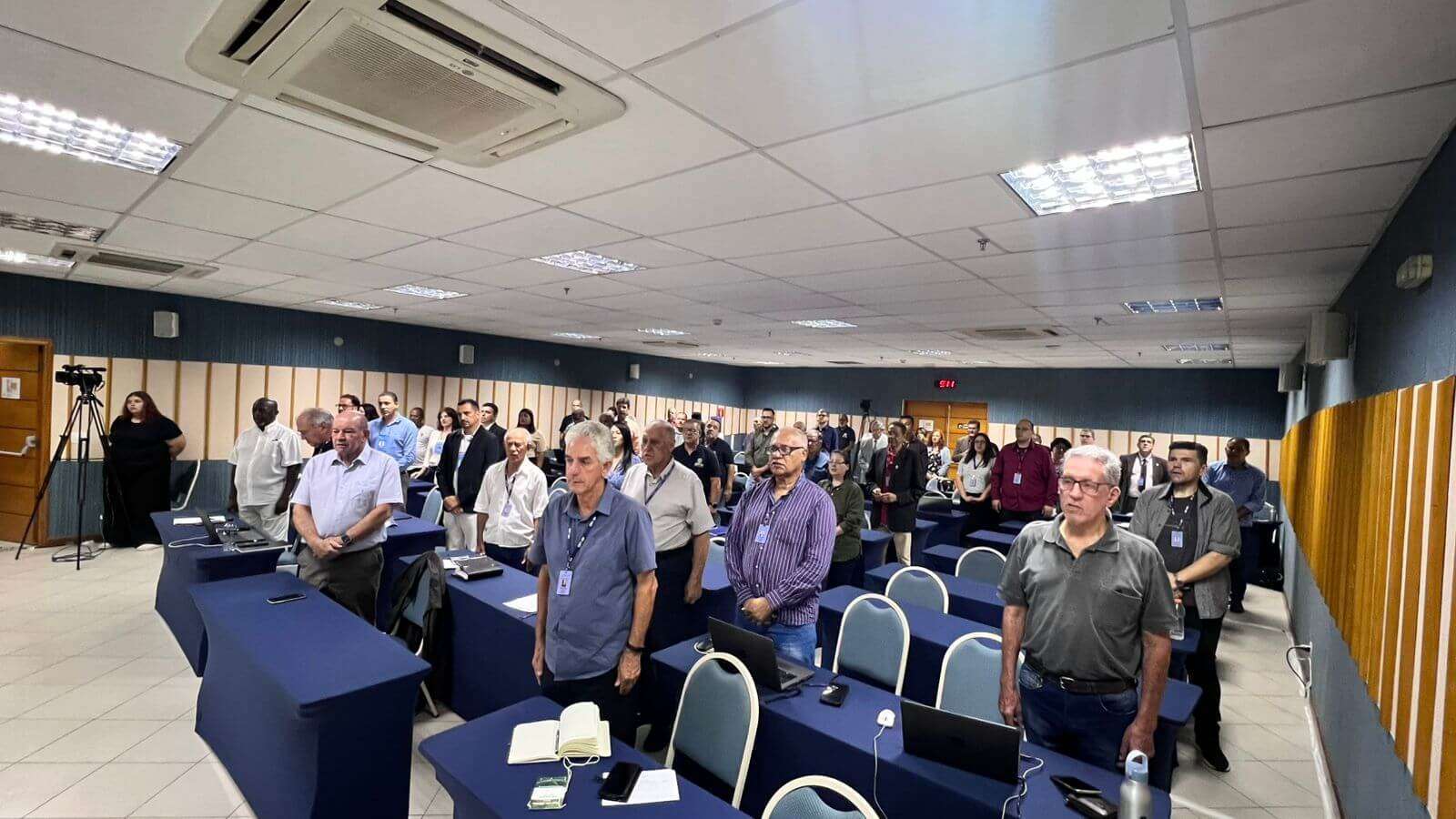 Mestre de cerimônia, Mesaque Araújo da Silva, procedeu com a leitura da “missão, visão e valores”, em conformidade com a cultura organizacional e o planejamento plurianual do Sistema CFT/CRTs, seguido da execução do Hino Nacional Brasileiro e a confirmação nominal do quórum regimental.