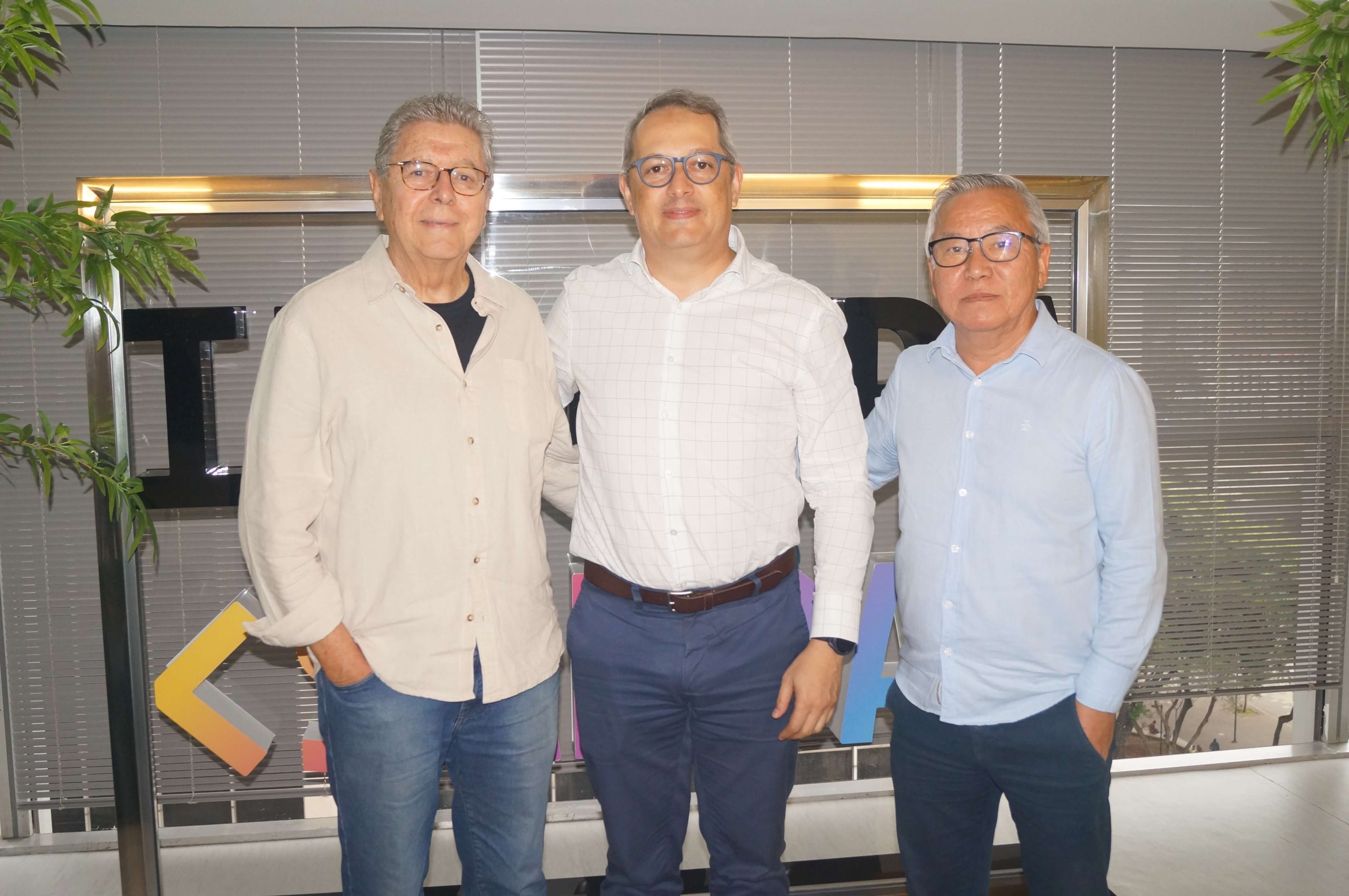 Reunião entre CRT-SP e PRODAM-SP, na capital paulista; à direita, Gilberto Takao Sakamoto com o diretor-presidente Johann Nogueira Dantes e o vereador Eliseu Gabriel