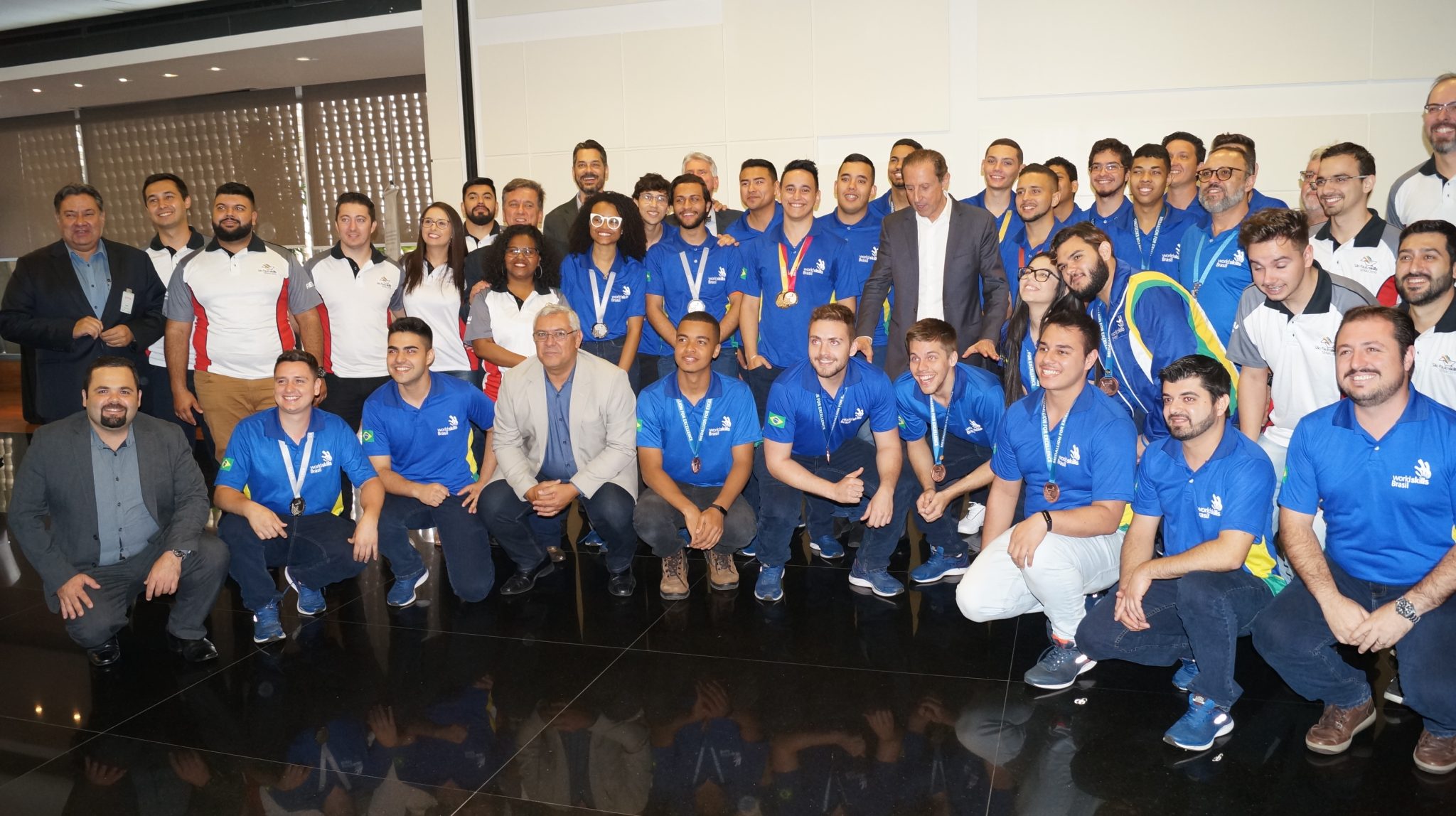 Diretores do Conselho Regional dos Técnicos Industriais do Estado de São Paulo (CRT-SP) estiveram, no dia 11 de setembro de 2019, na sede do Serviço Nacional de Aprendizagem Industrial (SENAI-SP) para dois compromissos. Primeiramente, eles prestigiaram a recepção da delegação brasileira que conquistou o honroso terceiro lugar no ranking geral de pontos na WorldSkills 2019 – a olimpíada do conhecimento –, realizada de 22 a 27 de agosto na cidade de Kazan, Rússia. Formado por 63 estudantes – muitos de cursos técnicos, a equipe brasileira conquistou duas medalhas de ouro, cinco de prata, seis de bronze, e ainda 28 certificados de excelência em áreas estratégicas para a indústria do futuro.