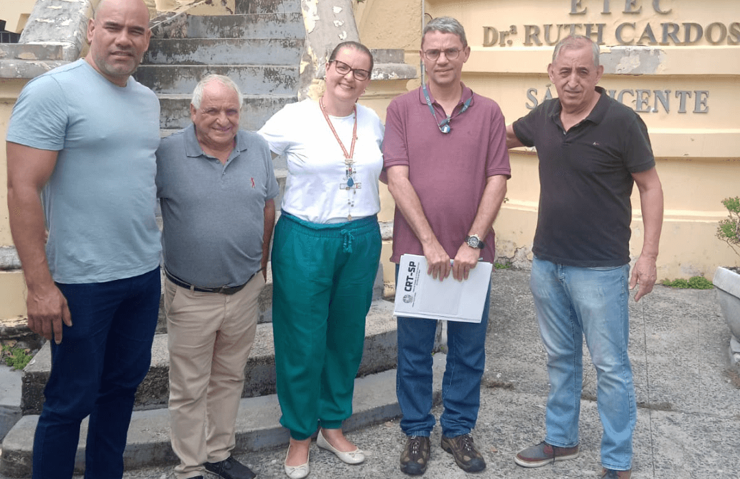 No dia 29 de março de 2023, o diretor financeiro Pedro Carlos Valcante e os funcionários Ademir Alves do Amaral e Plinio Cimino, respectivamente assessor da presidência e assistente da diretoria, estiveram em São Vicente para vistoria e tratativas de locação de imóvel para abrigar o escritório regional do Conselho Regional dos Técnicos Industriais do Estado de São Paulo (CRT-SP) – Baixada Santista, ainda sem data de inauguração. Na ocasião, eles também estiveram na ETEC Dra. Ruth Cardoso reunidos com a diretora Ieda Aparecida de Jesus Couto Estácio, que gentilmente colocou à disposição do conselho um prático e moderno auditório, com capacidade para até 120 pessoas, para a inauguração do escritório e, eventualmente, para eventos e ações de interesse dos técnicos e da sociedade.