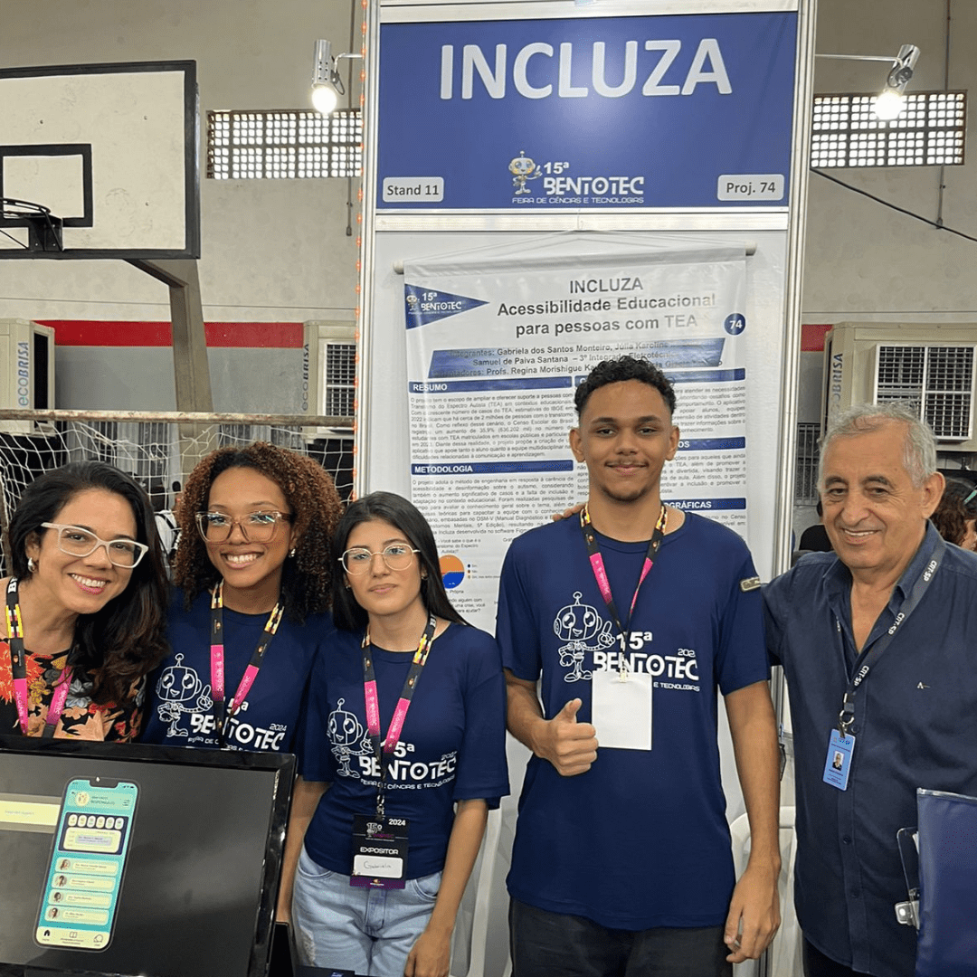 Homenageados com menção honrosa – Ao final do evento, o CRT-SP atribuiu menção honrosa a dois projetos. Em primeiro lugar, “Incluza – Acessibilidade Educacional para Pessoas com TEA”, autoria de Gabriela dos Santos Monteiro, Júlia Karoline Miranda Lima e Samuel Santana de Paiva, alunos do curso técnico de eletrotécnica da ETEC Bento Quirino, com a orientação e co-orientação das professoras, Regina Morishique Kawakami e Gláucia Gisele Tenório, respectivamente. O objetivo de projeto é conceber um dispositivo de baixo custo direcionado para indivíduos com deficiência visual, visando proporcionar-lhes maior autonomia e confiança em suas rotinas cotidianas.
