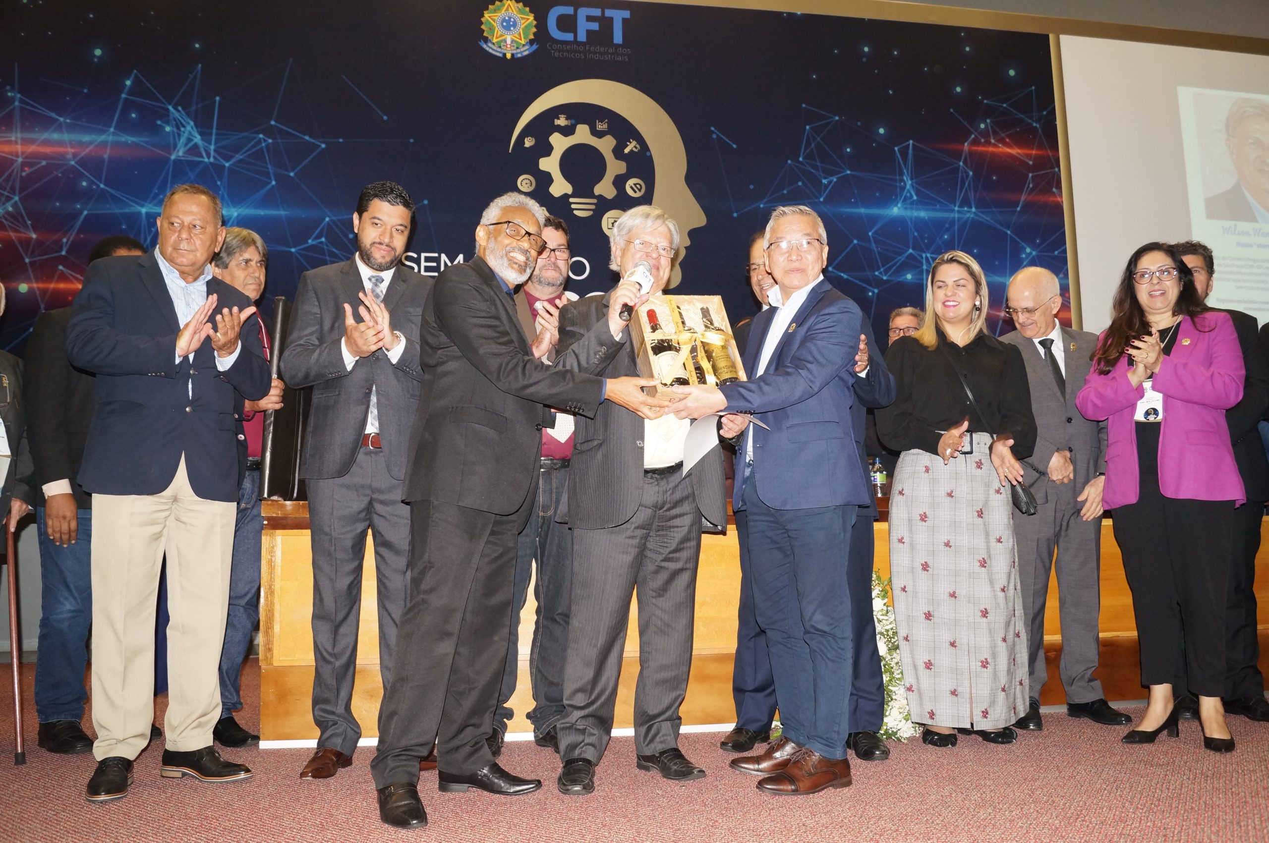 Homenageado ausente mais presente – A Semana do Técnico Industrial do Sistema CFT/CRT terminou em grande estilo, primeiramente com homenagens da diretoria executiva do CFT a Wilson Wanderlei Vieira. “Você faz parte da história e sempre estará conosco nessa caminhada. Jamais iremos esquecer sua luta, dedicação e, acima de tudo, visão de futuro”, discursou Solomar Pereira Rockemback. Embora tenha sido um dos principais precursores do movimento dos técnicos, em agradecimento o ex-presidente enalteceu a participação conjunta de todos os envolvidos. “Tem um pedacinho de cada um nessa homenagem”, compartilha.