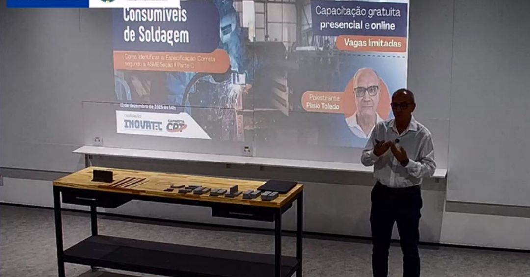 A aula foi ministrada por Plísio Toledo, sócio-proprietário da Toledo&Melo Engenharia de Soldagem e Soluções Industriais e especialista em inspeção de solda. Toledo enfatizou a importância da escolha adequada do consumível para garantir a segurança e eficácia em diversas aplicações, desde submarinos e chassis de automóveis até grandes estruturas metálicas.