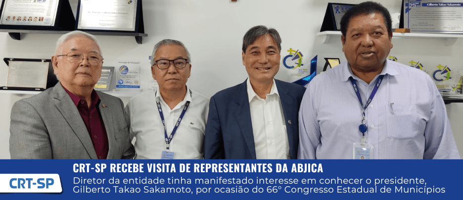 No dia 12 de junho de 2024, o Conselho Regional dos Técnicos Industriais do Estado de São Paulo (CRT-SP) recebeu a visita do pesquisador do Instituto de Pesquisas Tecnológicas (IPT) e diretor de habitação da Associação dos Bolsistas JICA São Paulo (ABJICA), Agostinho Tadashi Ogura, acompanhado do conselheiro, Massahaki Shimada.