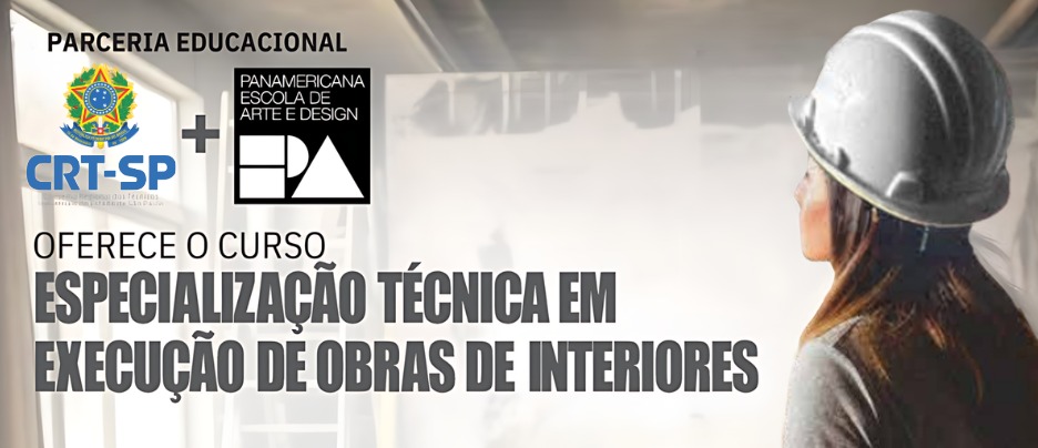 Vem aí mais um Curso de Especialização Técnica em Execução de Obras de Interiores, uma iniciativa da Escola Panamericana de Arte e Design com o apoio do Conselho Regional dos Técnicos Industriais do Estado de São Paulo (CRT-SP). Podem participar os Técnicos em Design de Interiores, Técnicos em Edificações e Construção Civil, e Técnicos em Desenho de Construção Civil, com direito a 50% de desconto para quem possui registro ativo no conselho.