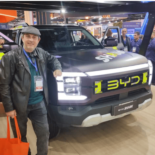 Conselheiros que integram o Grupo de Trabalho de Energias Renováveis (Limpa de Acessível), Flávio Aparecido Vinha – coordenador – e José Tadeu de Aguiar Pio, também estiveram na Intersolar South America 2024. Em meio a tantas visitas e acesso a ideias inovadoras que podem ser incorporadas às atividades do grupo, eles visitaram o estande de BYD Brasil, empresa que tem conquistado espaço no mercado automotivo com veículos elétricos e híbridos e que, indubitavelmente, também gerará muitas oportunidades de serviços, diretas e indiretas, para os técnicos.