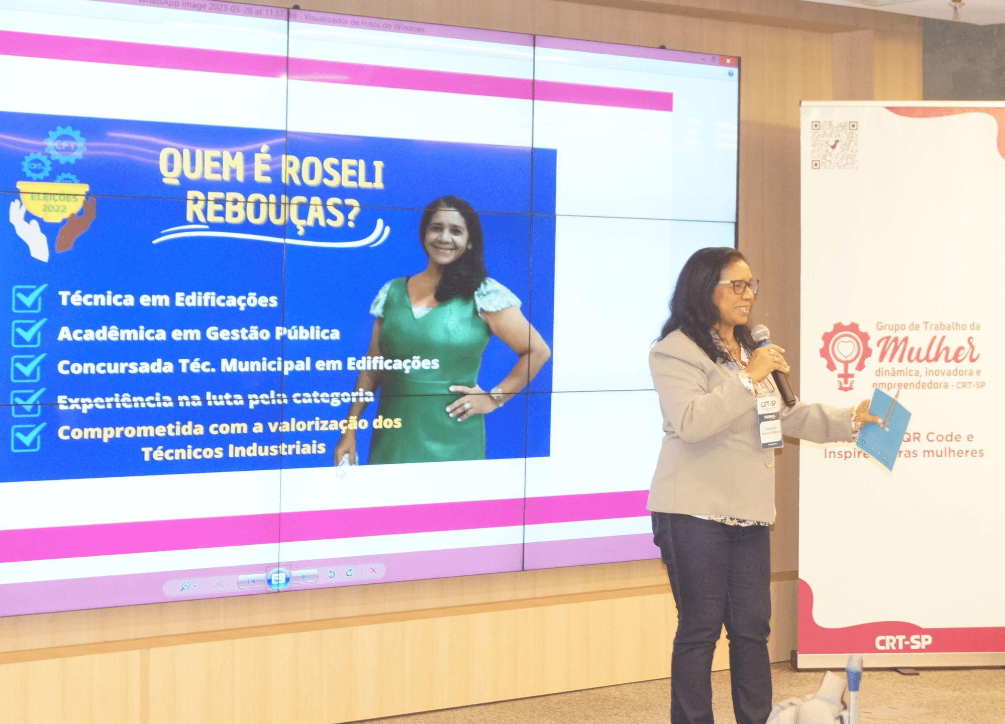 Representando o Conselho Regional dos Técnicos Industriais da 1ª Região (CRT-01), a Técnica em Edificações Roseli Brito Sobrinho Rebouças também compartilhou um pouco de sua história profissional de quase 15 anos no setor técnico. “Fiz magistério e encontrei na modalidade de edificações o curso mais compatível com as minhas expectativas. Devido à dificuldade em matemática quase desisti no início, mas fui incentivada por um professor, venci todas as etapas, fiz estágio e me formei em 2003”, relata. Além de conselheira suplente no CRT-01, ela também é concursada pela Prefeitura de Boa Vista (RR).